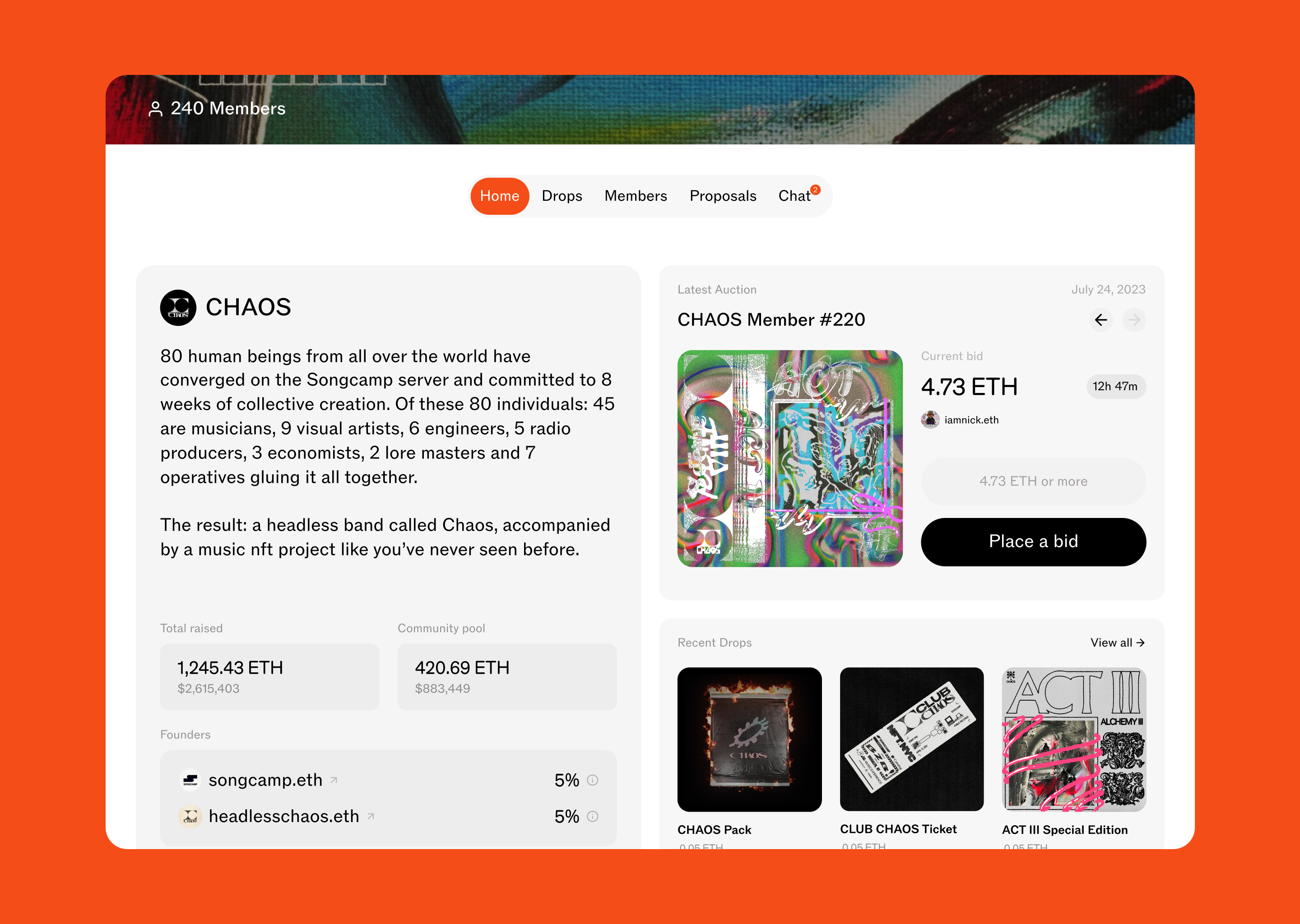 Music collectives have long been a powerful cultural driver and have had a significant impact in shaping the music scene as we know it. The Wu Tang Clan, Swedish House Mafia, The Grateful Dead, Odd Future and many more are examples of what can be created when collaboration and experimentation are a core principle of the group's existence. What does that look like onchain, and at scale?