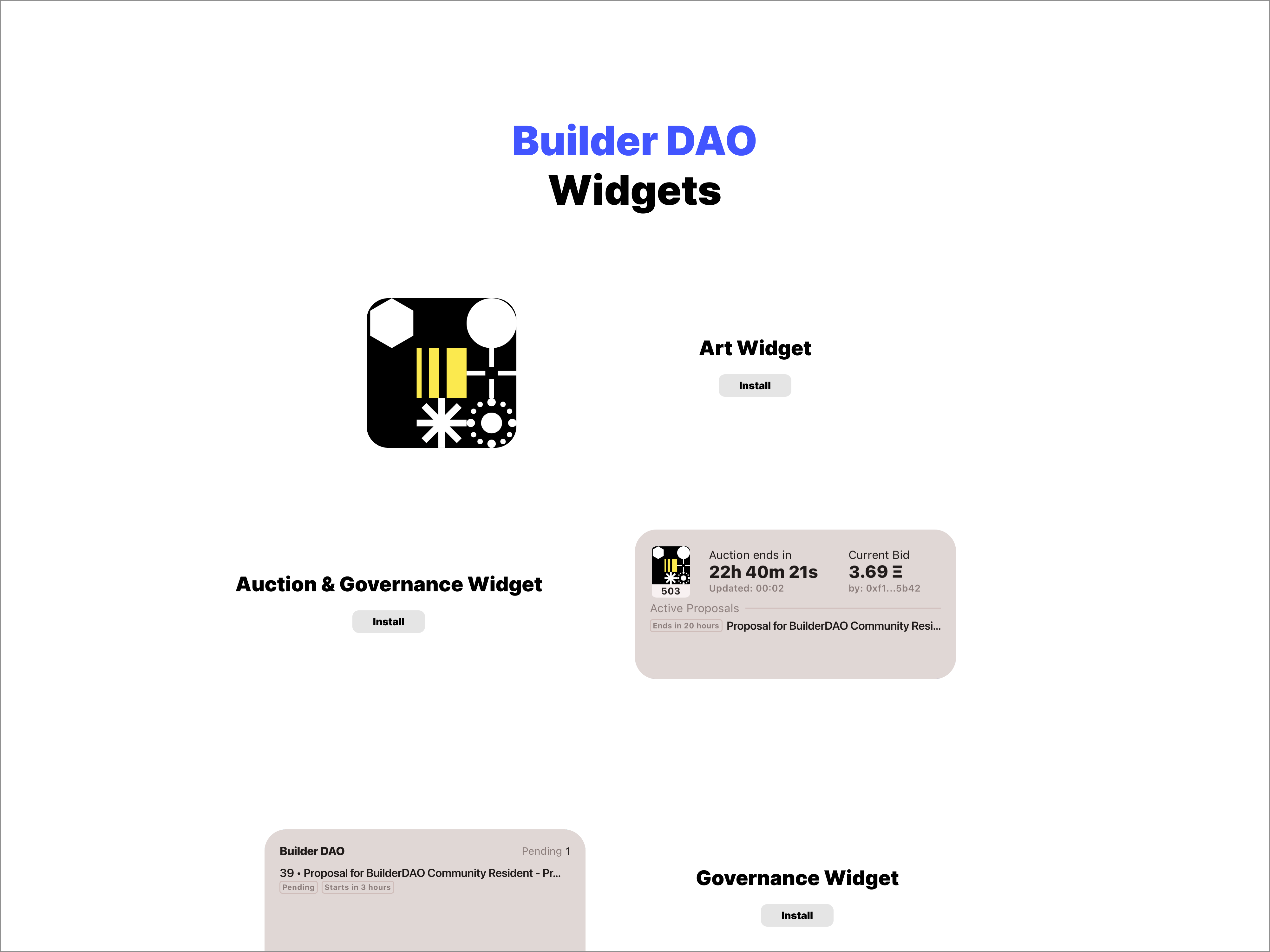 Auction and Governance. View current auction state and proposals. Medium and Big sizes widgets supported. When adding Big sized widget, proposals are shown with more details.