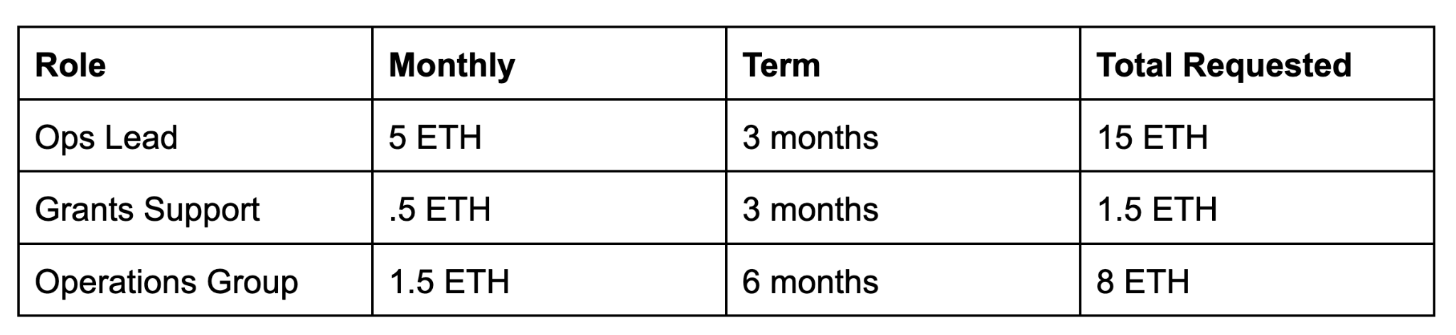 The total amount requested is 24.5 ETH, constituting 7% of our current treasury holdings.