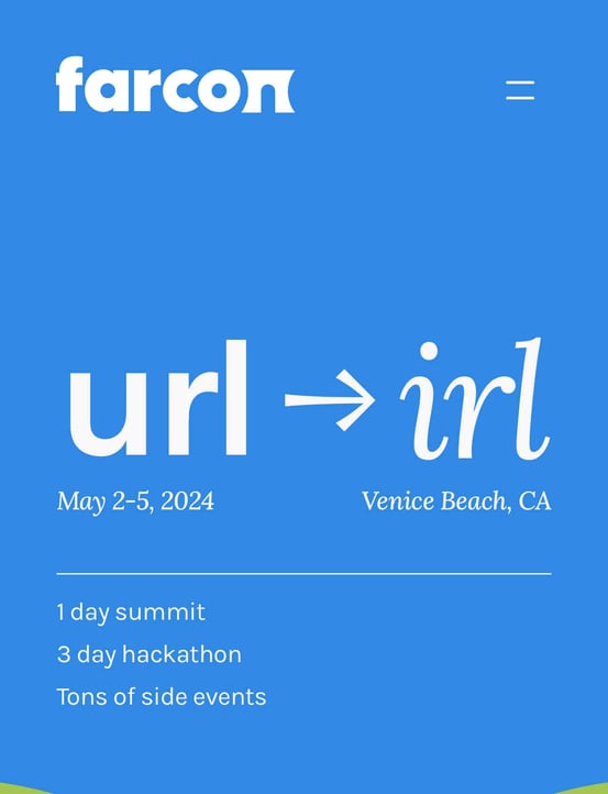 FarHack hackathon: May 3-5 "the ultimate farcaster hackathon to learn how to build cool farcaster sh*t with cool farcaster people — with 24 hours to start building it and all the hands-on support you may need." more info here - https://farhack.xyz/